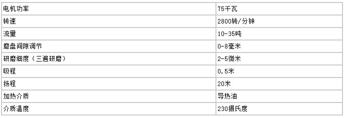 高速剪切均化磨技術(shù)參數(shù)(30T/小時(shí))