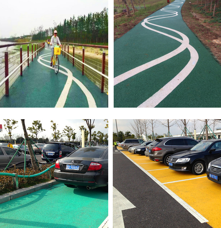 彩色瀝青是一種新型環(huán)保的筑路材料,再與各種顏色石料、色料和添加劑等材料拌合,通過攤鋪、碾壓便形成具有一定路用性能的混泥土路面;彩色瀝青路面給城市道路帶來很多的便利。多用于下面幾個地方